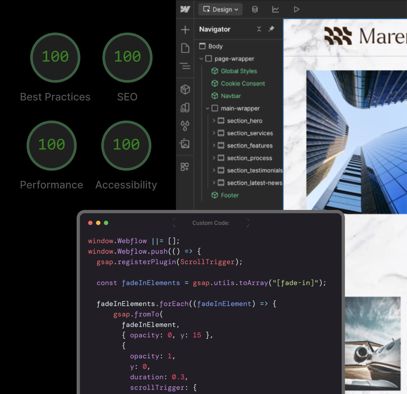 While you focus on your next big project, we turn your design into a website that’s pixel-perfect, smooth, and built to last. And we keep you updated, so you always know what’s happening.